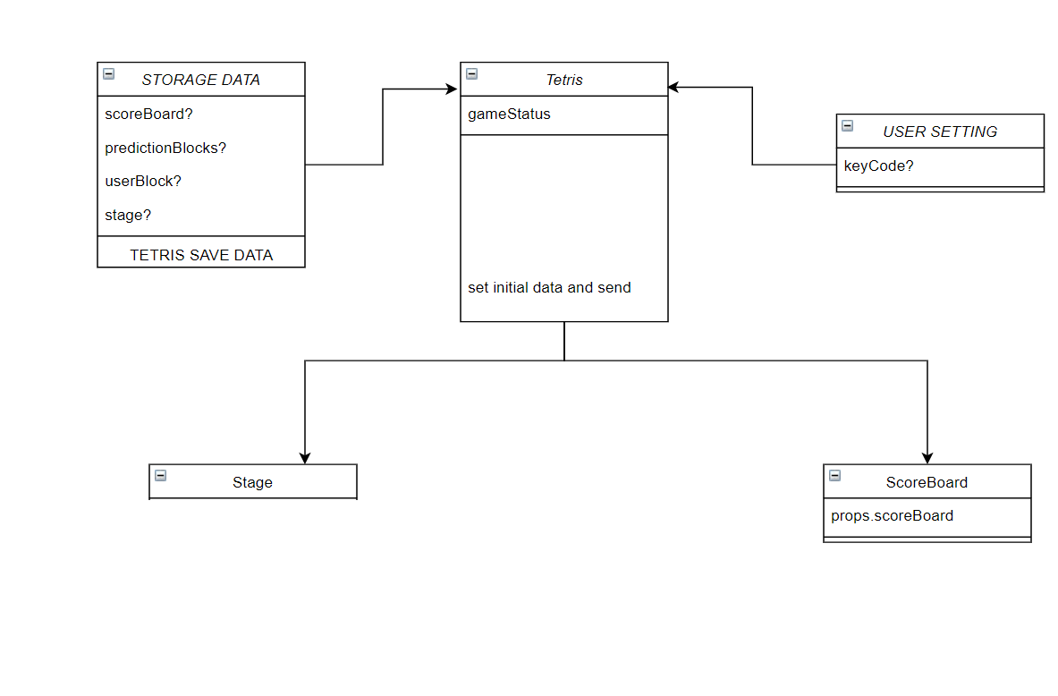 후에 게임 저장 기능도 만들거기 때문에 해당 데이터들은 Tetris에 props로 뿌려주는 방식으로 할거며 없을수도 있으니 ? 키워드를 붙인다 만약 없으면 Tetris component에서 initial value로 생성해서 뿌려주는 방식